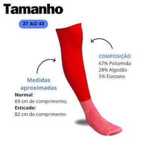 Produzido com pé em algodão que garante o conforto e evita bolhas durante a pratica do esporte. Corpo e cano do meião em poliamida e elastano garantem o suporte da caneleira e panturrilha.