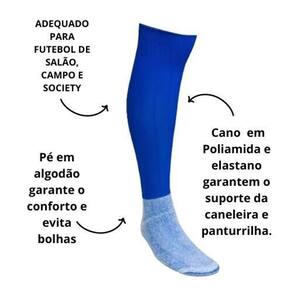 Kit com 6 Meiões de Futebol pés em Algodão Conforto Adulto Cor: Royal Descrição Kit com 6 Meiões tradicionais para futebol - Ideal para fardamentos Produzido com pé em algodão que garante o conforto e evita bolhas durante a pratica do esporte. Corpo e cano do meião em poliamida e elastano garantem o suporte da caneleira e panturrilha. Medidas aproximadas: - Normal: 69 cm de comprimento; - Esticado: 82 cm de comprimento; - Tamanho: 37 ao 43. Composição - 67% Poliamida; - 28% Algodão; - 5% Elastano. Conteúdo da embalagem: - 6 pares de meias. do fabricante: 30 dias Marca: Não Informado