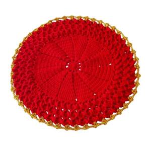 - Material: Fio de alta qualidade, resistente e durável. - Tamanho: Aproximadamente 35cm de diâmetro. - Cor: Vermelho e Dourado - Fácil manutenção: Lavável e prático para uso diário.