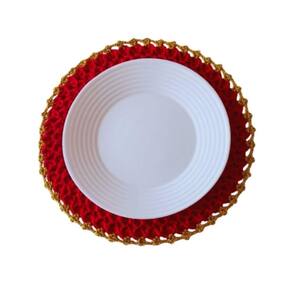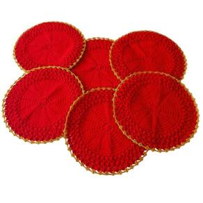 Kit com 6 Sousplat em Crochê Artesanal 35cm Vermelho com Dourado Sousplat de Crochê Artesanal - Elegância e Charme à Sua Mesa