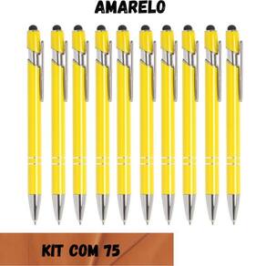 Kit com 75 canetas touch esferográfica escrita azul - luxo Cor: amarelo Bem vindo a nossa loja A lualki store tem os melhores produtos para seu uso. Se atentamos para total satisfação do cliente. Caneta metálica touchscreen sem gravação A caneta touch esferográfica 2 em 1 é perfeita para quem busca praticidade no dia a dia com um design elegante e funcional, ela combina a escrita suave de uma caneta esferográfica de ponta fina com a versatilidade de uma ponta touch, ideal para telas sensíveis de smartphones, tablets e outros dispositivos. Caneta metálica touchscreen com acabamento à borracha, acionamento por clique e carga esferográfica azul 1.0mm. Largura:1,10 Altura:13,90 Medidas aproximadas para gravação cxl :0,7 cm x 3,5 cm Peso aproximada:18 g Marca: Não Informado