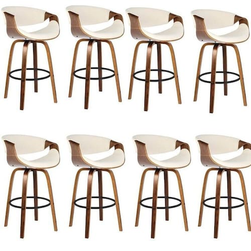 Com design clássico, a banqueta Nicole traz conforto e praticidade para sua casa, além, de proporcionar detalhes amadeirados que garantem elegância para seu ambiente. Banqueta giratória com estrutura de madeira compensada sem ajuste de altura, possui assento e encosto para as costas estofados não reclinável e revestidos em poliuretano (PU) e apoio para pés em aço pintado. Altura do Conjunto: 103 cm Ambiente: null Ambiente Principal: Sala de Jantar Cor: Creme Informação Complementar: 8x Banqueta com Apoio e Base de Madeira Nicole Creme Largura: 54 cm Altura: 103 cm Peso: 7,5 kg Profundidade: 53 cm Necessita Montagem: Sim