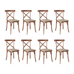 Kit com 8 Cadeiras Katrina de Jantar em Aço Cobre Assento Corano Bege - Laranja