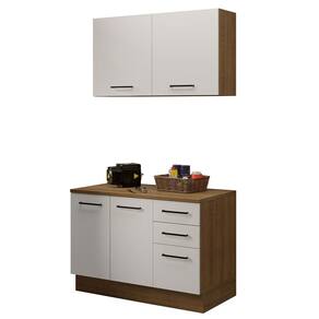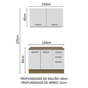 - Um (1) Balcão de 120 cm de largura com duas (2) portas, três (3) gavetas e tampo