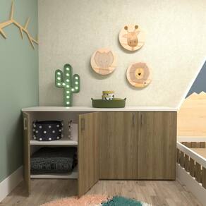 Kit com Cama Casal e Armário Baixo Montessoriano Yescasa Branco/Carvalho M. Os Móveis devem ser escolhidos com muito carinho, independente de qual for o ambiente, pois eles fazem parte da rotina do dia a dia do nosso lar ou trabalho. Portanto, na hora de decidir qual modelo, lembre-se: além de ter a ergonomia necessária, a medida ideal, um design incrível, eles também devem cumprir suas funções com desempenho total, e na hora da escolha das cores, elas devem combinar com seu estilo e personalidade. Os Conjuntos da Bramov Brasil possuem um design encantador, que permite trazer outros elementos decorativos para compor o ambiente.