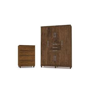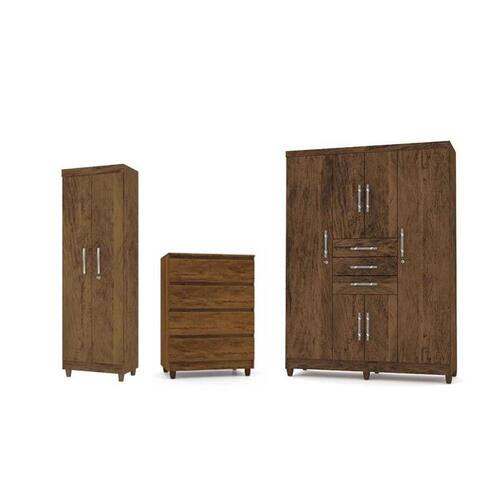 Jogo De Quarto Com Guarda Roupa Taurus, Multiuso Line E Cômoda Rio Imbuia - Vila Rica