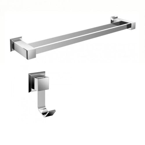 Altura: 22 cm Ambiente Principal: Banheiro Comprimento: 68 cm Cor: Cromado Cor do Produto: Cromado Cor Predominante: Cinza Itens Inclusos: 01 Porta toalha de banho duplo 62cm e 01 cabide Largura: 18 cm Material: Zamac Medida de Cada Item: Dimensões Cabide:Comprimento(C): 4,9cmLargura(L): 7,8cmAltura(A): 8,2cmPeso: 0,200 kgDimensões Porta toalhas duplo 62cm:Comprimento(C): 62cm - 54 cm interno (espaço para toalha)Largura(L): 11,8cmAltura(A): 4,9cmPeso: 1,060 kg Origem do Produto: Nacional Peso: 1,46 kg