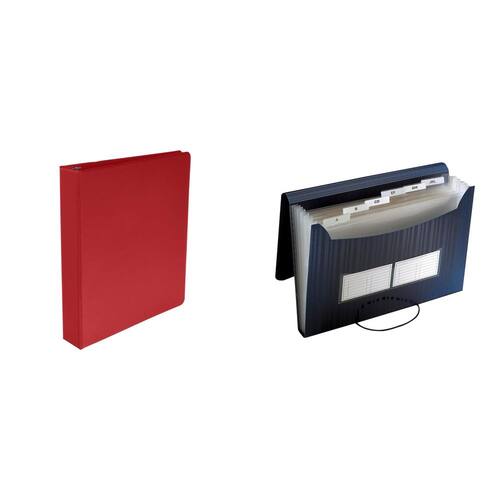 - O kit inclui: fichário redondo vermelho Casafoyer de 1-1/2 polegadas e arquivo expansível preto de 7 bolsos