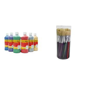 - O kit inclui: conjunto de 6 tintas de têmpera laváveis e 36 pincéis grossos para cabelo de boi.