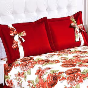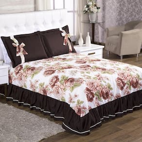 Kit combo 2 colcha cobre leito lençol casal 3 pçs floral vermelho e marrom O belíssimo cobre leito lençol isabela é um produto ideal para vestir sua cama. Confeccionado em tecido misto 60% algodão / 40% poliéster, possui linda estampa floral com babado em sua lateral. Os porta travesseiros são lisos e possuem um lindo detalhe em laço.
