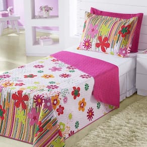 Kit Combo Infantil Cobre Leito E Lençol 5 Peças Garden PinkA coleção infantil foi elaborada para seu filho e filha. A coleção conta com as estampas futebol, joaninha, garden lilás e garden pink que irão alegrar o ambiente além de proteger a cama dos pequenos.Confeccionado em microfibra 100% poliéster, esse kit é composto por 01 cobre leito, 01 porta travesseiro, 01 lençol de cima, 01 lençol com elástico e 01 fronha. Conteúdo da embalagem Cobre leito- 01 cobre leito com medidas de 2,15 m x 1,50 m- 01 porta travesseiro com medidas de 65 cm x 45 cm Jogo de cama-01 lençol de baixo com elástico 1,88m x 0,88cm x 20cm-01 lençol de cima 2,15m x 1,60m-01 fronha 70cm x 50cm Composição textil Cobre leito- tecido superior: 100% poliéster estampado - enchimento: 100% poliéster- tecido inferior: 100% poliéster liso Jogo de cama- tecido 100% poliéster Ficha técnica Cobre leito- quantidade de peças: 02- cor: estampa garden pink- bordado: não- fabricação: matelado sem linha ultrassônico Jogo de cama- quantidade de peças: 03- cor: estampado garden pink- bordado: não- fabricado: n/a Orientações para lavagem- utilizar processo de lavagem muito suave ou manual;- temperatura máxima da água de 30°c;- não deixar o produto de molho, pois roupas de cama de cor forte podem desbotar;- utilizar sabão neutro.- evite sabão do tipo limpeza profunda e/ou tira manchas;- não alvejar / não branquear;- não secar em secador rotativo não utilizar secadora ;- não lavar a seco;- passar com temperatura baixa, sem vapor temperatura máxima de 110°c ;- vapor pode causar danos irreversíveis. Atenção- quantidade de peças vide campo conteúdo da embalagem.- pode ocorrer variação de tonalidade do tecido de acordo com o lote da matéria-prima.- verificar as dimensões do produto antes da compra.- é necessário levar em consideração a altura da cama ou a altura do box da cama + colchão, para que o caimento do produto seja perfeito.- siga as orientações de lavagem para aumentar a vida útil das peças.- variação das cores pode ocorrer de acordo com a configuração do monitor.- as peças decorativas não estão inclusas neste produto.- foto ilustrativa. Marca: Lux Enxovais