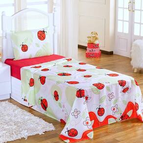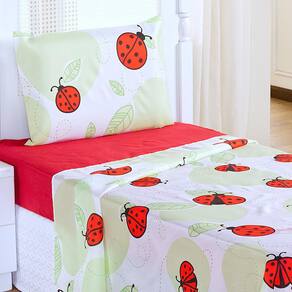 Jogo de cama - quantidade de peças: 03 - cor: estampado joaninha - bordado: não - fabricado: n/a