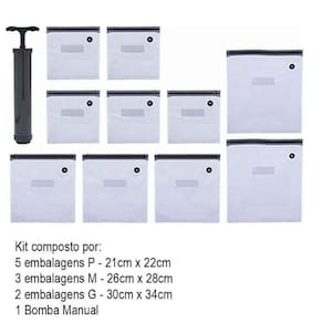 Kit 10 sacos a vácuo compact food + bomba manual - Paramount