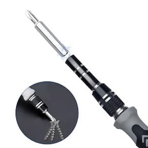 - Material: Fabricado em aço cromo-vanádio, garantindo resistência ao desgaste e durabilidade excepcional com dureza superior a HRC65 - Pontas Magnéticas: Fixam parafusos com segurança, facilitando a manipulação de componentes pequenos e reduzindo o risco de perda. - Ergonomia e Precisão: O eixo temperado de óxido preto proporciona maior resistência e vida útil prolongada, ideal para uso contínuo. - Organização Inteligente: Acompanha maleta compacta e resistente, com fecho de segurança e slots moldados para cada ferramenta, permitindo acesso rápido e organizado.
