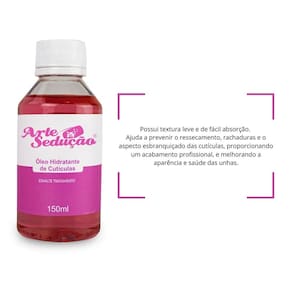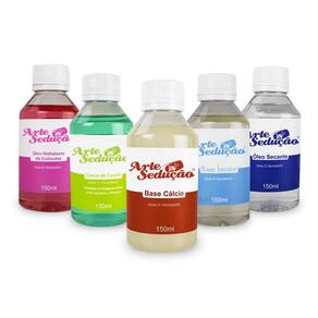 Contém: 01 - Óleo Hidratante de Cutículas, 150ml, Arte Sedução; 01 - Esmalte de Tratamento Casco de Cavalo, 150ml, Arte Sedução; 01 - Esmalte de Tratamento Base Cálcio, 150ml, Arte Sedução; 01 - Esmalte de Tratamento Base Incolor, 150ml, Arte Sedução; 01 - Óleo Secante de Esmaltes, 150ml, Arte Sedução. O Kit Força Total e Spa de Cutículas da Arte Sedução é a solução completa para quem busca unhas fortes, bem cuidadas e com acabamento . Ele reúne Óleo Hidratante Revitalizador de Cutículas, que nutre e suaviza, deixando as cutículas com aspecto saudável; o Casco de Cavalo, que fortalece e protege contra quebras; a Base Cálcio, que repõe minerais essenciais e auxilia no crescimento das unhas; a Base Incolor, que prepara e protege as unhas antes da esmaltação; e o Óleo Secante, que acelera a secagem e ainda ajuda a preservar o brilho. Combinando tratamento intensivo e cuidado estético, este kit oferece o necessário para um cuidado completo das unhas e cutículas. Além de proporcionar um acabamento , traz um ótimo custo-benefício, unindo força total e spa de cutículas em produtos indispensáveis para a rotina de cuidados com as unhas. Características Principais: - Ideal para quem busca unhas fortes, bem cuidadas e com acabamento ; - Óleo Hidratante de Cutículas nutre e suaviza, deixando as cutículas com um aspecto saudável; - Casco de Cavalo fortalece e protege as unhas contra quebras, lascas e descamações; - Base Cálcio repõe minerais essenciais e auxilia no crescimento das unhas; - Base Incolor prepara e protege as unhas antes da esmaltação; - Óleo Secante acelera a secagem e ajuda a preservar o brilho; - Combina tratamento intensivo e cuidado estético; - Proporciona um acabamento ; - Produtos indispensáveis para a rotina de cuidados com as unhas; - Excelente custo-benefício.