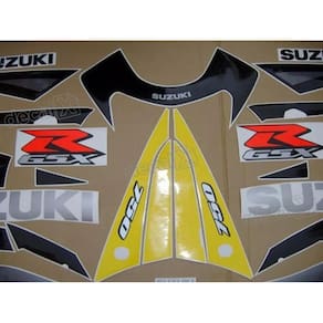 Kit completo adesivos suzuki gsxr 750 2003 amarela e cinza a Kit completo adesivos suzuki gsxr 750 2003 amarela e cinza Adicionar aos favoritos Características: Adesivo impressão uv resistente a sol e chuva. Marca: orajet Vantagens: Vinil do tipo permanente com mais desempenho e estabilidade. Fabricante de renome internacional; Durabilidade de em média até 4 anos após aplicação; Resistência térmica, química, à umidade e à corrosão; Adesivo calandrado de fácil aplicação e alto grau de aderência. Adquira adesivos de qualidade Adesivo impresso com tinta uv, resistente a sol e chuva Aceita verniz automotivo exceto adesivos resinados Material próprio para linha automotiva 25 - unidades de adesivos Ref: spts-ad-1141 Info: Características: Alta qualidade e durabilidade. Material adesivo autocolante. Fácil aplicação. Suporta aplicação de verniz automotivo quando o adesivo não for resinado Produzido com recorte eletrônico. Ótima aderência. Resistente a chuva e raios uv. Não perde coloração. / entrega: Despachamos em até 24 horas úteis após confirmação de pagamento. Embalagem com proteção para transporte. Instalação: Limpe cuidadosamente as peças onde os adesivos serão aplicados, retirando todos os resíduos poeira, gordura, óleo, desengripante etc... Não utilizar materiais abrasivos sobre os adesivos. Após aplicação a cola leva até 48 horas para finalizar sua cura total. A spts produz adesivos automotivos seguindo medidas e cores compatíveis com o mercado. Trabalhamos com materiais de ponta, garantindo assim sua qualidade e também o melhor custo benefício para você. Possuímos adesivos para toda a linha automotiva, motos, caminhões, máquinas pesadas, máquinas agrícolas e também itens de personalização e resinados. Marca: Não Informado