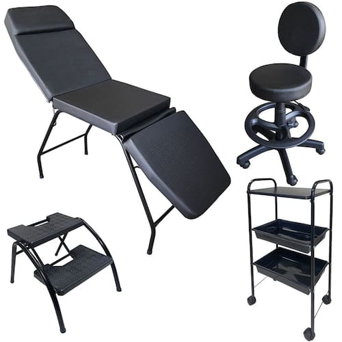 O kit perfeito para quem valoriza qualidade, conforto e organização. Composto por itens essenciais, ele oferece uma solução completa para clínicas, estúdios de estética, depilação, massagem, tatuagem e muito mais.