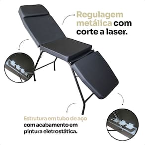 • Maca 3 Posições: conforto e versatilidade para diversos procedimentos, estofado em tecido Facto, estrutura metálica dobrável, possui regulagens em aço com 5 níveis de regulagem no Encosto e 4 nos pés e suporte para até 160 kg.