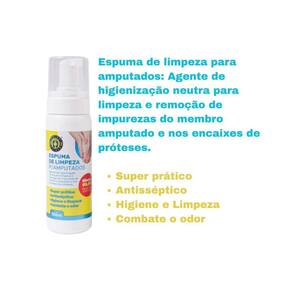 Espuma de limpeza para amputados: Agente de higienização neutra para limpeza e remoção de impurezas do membro amputado e nos encaixes de próteses. -super prático