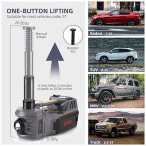 O kit EFFIROSO Portable 5 Ton contém um macaco de 5 toneladas que possibilita o levantamento automático do veículo, junto com uma bomba infladora de 150 PSI para rápida calibragem dos pneus. A chave de impacto elétrica permite a instalação eficiente dos parafusos dos pneus. Até iniciantes podem trocar pneus facilmente. Equipado com um motor de cobre puro de alta potência de 150W, suporta levantar até 5 toneladas a uma altura de 17,7 polegadas. Substitui as ferramentas tradicionais manuais de troca de pneus. Adaptável a ambientes severos, o motor funciona normalmente em temperaturas entre -15°C e 50°C, garantindo operação confiável, inclusive em áreas de alta altitude, litorâneas e extremamente frias. Com funcionamento simples e rápido, o sistema de controle Instantâneo completa o levantamento do veículo em apenas 2 minutos, aumentando significativamente a eficiência em comparação com os macacos manuais tradicionais.
