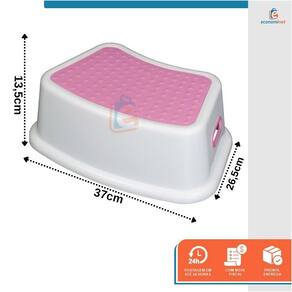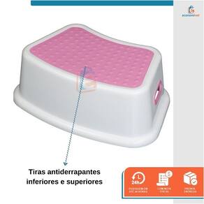 Características Técnicas - Degrau Infantil: Material: Polipropileno (PP) Modelo: Rosa Peso suportado: Até 80kg Peso: 0,46 kg Dimensões: 13,5cm (A) x 26,5cm (L) x 37cm (C) Medidas da base dos pés: 19cm (L) x 29cm (C) Idade recomendada: A partir de 18 meses Ref.: 17282