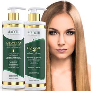 Este kit profissional foi desenvolvido para oferecer um tratamento completo para cabelos, combinando limpeza profunda, redução de volume e neutralização para resultados duradouros e saudáveis. Ideal para salões de beleza ou uso doméstico, ele é indicado para quem busca cabelos mais lisos, hidratados e disciplinados. Conteúdo do Kit Shampoo Antirresíduo Limpeza do Couro Cabeludo 500g : Fórmula especialmente desenvolvida para limpar profundamente o couro cabeludo e os fios. Remove impurezas, oleosidade e resíduos acumulados, preparando o cabelo para o tratamento progressivo. Escova Progressiva Redutora de Volume Organic 500g : Com ingredientes orgânicos, proporciona redução de volume, alinhamento capilar e controle do frizz. Compatível com todos os tipos de cabelo, inclusive os quimicamente tratados. Fórmula livre de formol, minimizando riscos à saúde e oferecendo conforto durante o uso. Máscara Neutralizante Cronograma Capilar Profissional 500g : Hidrata profundamente, sela as cutículas dos fios e prolonga o efeito liso. Neutraliza o pH do cabelo após o tratamento progressivo, garantindo brilho e maciez.