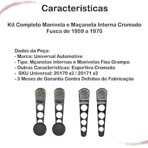 - 2 Manivelas de regulagem dos vidros - Modelo Esportivo - Cromadas