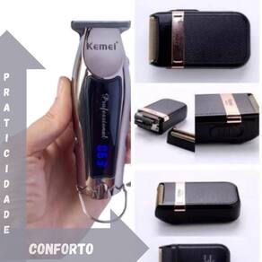 KM-9164: Uma máquina de corte multifuncional, ideal para cabelo, barba e corpo, com lâmina afiada que garante um acabamento perfeito sem danificar a pele. Portátil e recarregável via USB, proporciona uma experiência de barbearia no conforto da sua casa.