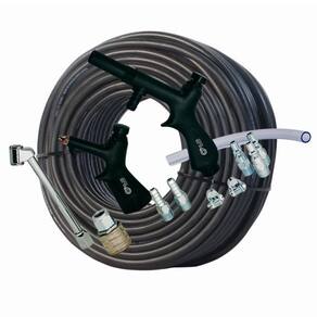 1 Pistola de ar com bico curto 1 Pistola de ar com bico alongado 1 Bico de encher pneu 3 Conectores engate rápidos macho 2 Conectores rosca 1/4 com saída 5/16 2 abraçadeiras para a mangueira 1 Engate Rápido 1/4 com rosca 1/4 1 Mangueira 5/16 com 10 metros