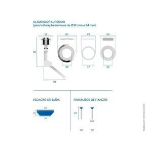 Nível de Água na Caixa de Descarga: Nível de água ajustável na caixa de descarga;