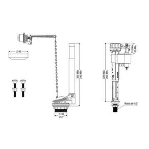 Kit Completo Para Caixas Acopladas Convencional Lateral Censi Garantia: 1 ano junto ao fabricante; Referência: 9565; Composição: Aço inoxidável, elastômeros e plástico de engenharia; Altura (Master Flux): Ajustável de 205 mm a 320 mm; Rosca de Saída: 2? (60 mm); Pressão Ideal: Entre 1 mca e 210 mca; Nível de Água na Caixa de Descarga: Ajustável de 87 mm a 260 mm; Tipo do Acionamento: Lateral; Entrada: Master Flux; Saída: Convencional Lateral; Itens Inclusos: 1 Mecanismo de Entrada Master Flux; 1 Mecanismo de Saída Convencional Lateral; 1 Acionador para Montagem Lateral; 1 Vedante; 1 Conjunto de Fixação;