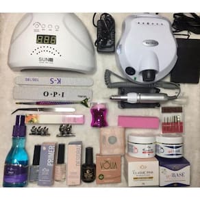 Enviamos exatamente igual a fotoKit contem :-cabine SUN 48w otima potencia Bvolt uv/led seca todo tipo de gelLixadeira D&Z porquinho Bvolt MANUAL 110v ou 220v 30mil rpm com pedal.-antibacterial piubella ou Volia enviado o disponível no momento sendo que trata-se do mesmo produto pra limpeza das unhas -paso 1- paso 2-base em gel-pincel para gel-fibras fiu a fiu-top coat 15 ml Pretinho-gel base-gel pink ou a escolher aleatório em caso de não escolher - Espanador- PincA-presilhas-oleo caneta-lixas