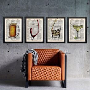 Kit composição 4 quadros vintage bar 24x18cm - com vidro Moldura: madeira preta Informações do produto tire todas as suas dúvidas no descritivo abaixo: decoração para quarto, sala, cozinha, escritório, área gourmet e muito mais. Chega de paredes vazias medidas - cada peça tem 24x18cm a5 . Material do papel - papel fotográfico brilhante de altíssima resolução acabamento - todos os quadros são acompanhados de vidro para proteção da imagem. - moldura em madeira maciça na cor preta ou branca conforme produto escolhido e pendurador . - os quadros são embalados de forma segura com plástico bolha com camada dupla de acordo com o tamanho dos quadros. Garantia - garantia de 3 meses. Meu quadro chegou. Como posso fixá-lo Você precisa apenas de um martelo e um prego, pois os quadros já vão acompanhados de penduradores. Esta é a forma mais indicada. Como posso limpar meu quadro A limpeza é feita como um móvel comum da sua casa. Apenas um pano seco ou espanador são suficientes para tal