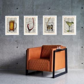Kit composição 4 quadros vintage bar 45x34cm - com vidro