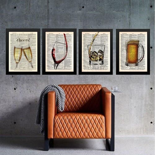 Kit composição 4 quadros vintage bar - bebidas 24x18cm - com vidro Moldura: madeira branca Informações do produto tire todas as suas dúvidas no descritivo abaixo: decoração para quarto, sala, cozinha, escritório, área gourmet e muito mais. Chega de paredes vazias medidas - cada peça tem 24x18cm a5 . Material do papel - papel fotográfico brilhante de altíssima resolução acabamento - todos os quadros são acompanhados de vidro para proteção da imagem. - moldura em madeira maciça na cor preta ou branca conforme produto escolhido e pendurador . - os quadros são embalados de forma segura com plástico bolha com camada dupla de acordo com o tamanho dos quadros. Garantia - garantia de 3 meses. Meu quadro chegou. Como posso fixá-lo Você precisa apenas de um martelo e um prego, pois os quadros já vão acompanhados de penduradores. Esta é a forma mais indicada. Como posso limpar meu quadro A limpeza é feita como um móvel comum da sua casa. Apenas um pano seco ou espanador são suficientes para tal