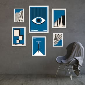 Kit composição 6 quadros artes bauhaus azuis - com vidro Cor: moldura branca Informações do produto tire todas as suas dúvidas no descritivo abaixo: decoração para quarto, sala, cozinha, escritório, área gourmet e muito mais. Chega de paredes vazias medidas - kit composto por 6 quadros, sendo 2 quadros com medida 18x24cm, 3 quadros com 24x33cm e 1 quadro com medida 33x45cm. Material do papel - papel fotográfico brilhante de altíssima resolução acabamento - todos os quadros são acompanhados de vidro para proteção da imagem. - moldura em madeira maciça na cor preta ou branca conforme produto escolhido e pendurador . - os quadros são embalados de forma segura com plástico bolha com camada dupla de acordo com o tamanho dos quadros. - de 3 meses. Meu quadro chegou. Como posso fixá-lo Você precisa apenas de um martelo e um prego, pois os quadros já vão acompanhados de penduradores. Esta é a forma mais indicada. Como posso limpar meu quadro A limpeza é feita como um móvel comum da sua casa. Apenas um pano seco ou espanador são suficientes para tal