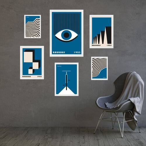 Kit composição 6 quadros artes bauhaus azuis Cor: moldura preta Informações do produto tire todas as suas dúvidas no descritivo abaixo: decoração para quarto, sala, cozinha, escritório, área gourmet e muito mais. Chega de paredes vazias medidas - kit composto por 6 quadros, sendo 2 quadros com medida 18x24cm, 3 quadros com 24x33cm e 1 quadro com medida 33x45cm. Material do papel - papel fotográfico brilhante de altíssima resolução acabamento - todos os quadros são acompanhados de uma película de acetato para proteção da imagem. - os quadros são embalados de forma segura com plástico bolha com camada dupla de acordo com o tamanho dos quadros. - de 3 meses. Meu quadro chegou. Como posso fixá-lo Você precisa apenas de um martelo e um prego, pois os quadros já vão acompanhados de penduradores. Esta é a forma mais indicada. Caso prefira, você pode utilizar uma fita dupla face neste caso, sugerimos de alta qualidade para evitar que descole e seu quadro caia . Como posso limpar meu quadro A limpeza é feita como um móvel comum da sua casa. Apenas um pano seco ou espanador são suficientes para tal Marca: Não Informado