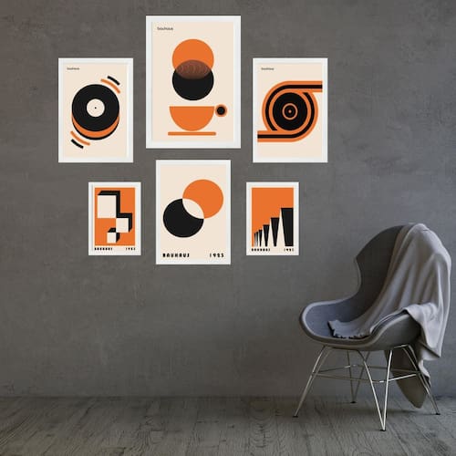 Kit composição 6 quadros bauhaus laranja e preto Cor: moldura preta Informações do produto tire todas as suas dúvidas no descritivo abaixo: decoração para quarto, sala, cozinha, escritório, área gourmet e muito mais. Chega de paredes vazias medidas - kit composto por 6 quadros, sendo 2 quadros com medida 18x24cm, 3 quadros com 24x33cm e 1 quadro com medida 33x45cm. Material do papel - papel fotográfico brilhante de altíssima resolução acabamento - todos os quadros são acompanhados de uma película de acetato para proteção da imagem. - os quadros são embalados de forma segura com plástico bolha com camada dupla de acordo com o tamanho dos quadros. - de 3 meses. Meu quadro chegou. Como posso fixá-lo Você precisa apenas de um martelo e um prego, pois os quadros já vão acompanhados de penduradores. Esta é a forma mais indicada. Caso prefira, você pode utilizar uma fita dupla face neste caso, sugerimos de alta qualidade para evitar que descole e seu quadro caia . Como posso limpar meu quadro A limpeza é feita como um móvel comum da sua casa. Apenas um pano seco ou espanador são suficientes para tal Marca: Não Informado