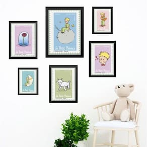 Kit composição 6 quadros pequeno príncipe - selos - com vidro Cor: moldura branca Informações do produto tire todas as suas dúvidas no descritivo abaixo: decoração para quarto, sala, cozinha, escritório, área gourmet e muito mais. Chega de paredes vazias medidas - kit composto por 6 quadros, sendo 2 quadros com medida 18x24cm, 3 quadros com 24x33cm e 1 quadro com medida 33x45cm. Material do papel - papel fotográfico brilhante de altíssima resolução acabamento - todos os quadros são acompanhados de vidro para proteção da imagem. - moldura em madeira maciça na cor preta ou branca conforme produto escolhido e pendurador . - os quadros são embalados de forma segura com plástico bolha com camada dupla de acordo com o tamanho dos quadros. Garantia - garantia de 3 meses. Meu quadro chegou. Como posso fixá-lo Você precisa apenas de um martelo e um prego, pois os quadros já vão acompanhados de penduradores. Esta é a forma mais indicada. Como posso limpar meu quadro A limpeza é feita como um móvel comum da sua casa. Apenas um pano seco ou espanador são suficientes para tal