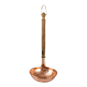 É composto por uma concha e uma escumadeira em cobre,