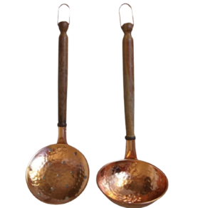 Kit Concha e Escumadeira em Cobre e Cabo de Madeira G