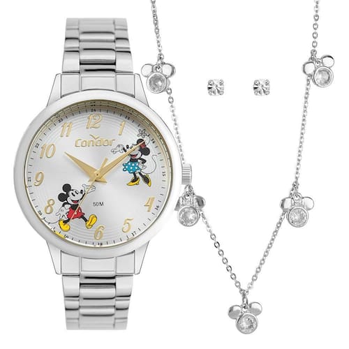 O Kit Condor Feminino Mimos e Sutilezas Prata - CO2035NVX/K4K é a escolha perfeita para quem busca um toque de charme e alegria no dia a dia. Inspirado na magia da Disney, o conjunto traz o casal mais famoso do mundo, Mickey e Minnie, em um design encantador que combina nostalgia e elegância.