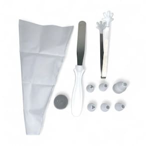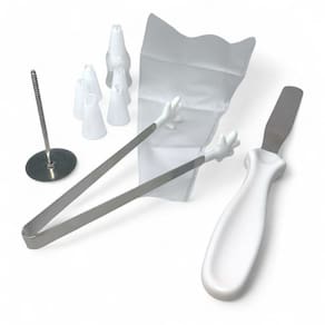Kit Confeitaria com 10 Peças - Ideal para Decorar, Criar e Impressionar Transforme sua paixão por confeitaria em arte com este kit completo e prático Com 10 peças essenciais, você terá tudo o que precisa para decorar bolos, cupcakes, tortas e muito mais com perfeição. O kit inclui: 1 Faca para confeitaria - 23cm x 2,5cm x 1,28 1 Pegador multifuncional - 13cm x 1,8cm x 1,1cm 1 Adaptador para bicos - 3cm x 2cm 5 Bicos de decoração variados - 3cm x 2cm 1 Saco de montagem reutilizável - 25cm x 14cm Material de qualidade: Fabricado em aço inoxidável e polipropileno resistente, este kit garante durabilidade, higiene e facilidade na limpeza. Ideal para iniciantes e profissionais Fácil de usar e transportar Perfeito para festas, eventos e uso diário Dê um toque às suas criações