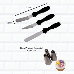 Kit confeiteiro especial para aqueles que estão iniciando no ramo da confeitaria ou para quem quer renovar seus utensílios. Conteúdo: - bailarina giratória - polipropileno - 30 cm branca - kit 2 raspadeiras decorativas - kit bico 1m 3 peças p m g - kit bico 1b 3 peças p m g - manga descartável 6 unid. - kit espátulas alisadoras 3 peças Não encontrou o que procura Nos envie uma mensagem com sua sugestão faremos o possível para encontrar e publicar o que deseja com um valor competitivo, assim você poderá colocar todos os produtos no carrinho e enviaremos tudo em um único . A isamar é uma empresa voltada ao segmento de panificação e confeitaria. Atuamos no mercado desde 1978, criando parcerias e impulsionando negócios. Desenvolvemos produtos de alta qualidade para que possamos atender bem cada cliente, o que faz de cada um, parceiros e amigos. Atuamos em todo o território nacional oferecendo soluções completas para o setor. Obrigado pela visita e boas compras Marca: Não Informado