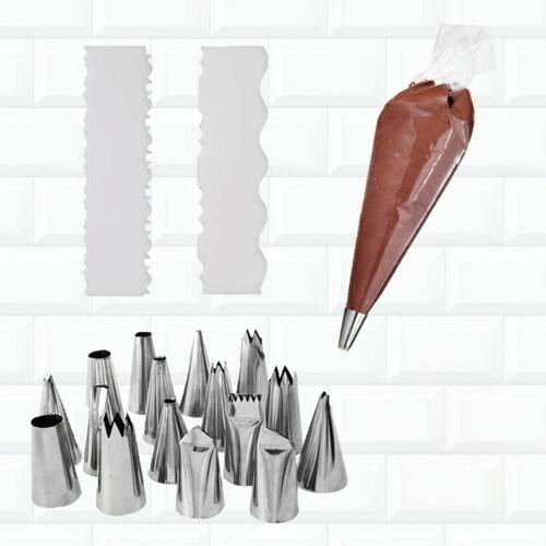 Kit confeiteiro especial para aqueles que estão iniciando no ramo da confeitaria ou para quem quer renovar seus utensílios. Conteúdo: - manga descartável 6 unid. - jogo de bico inox 16 peças: 6 crespos nº0 ao nº5 , 6 lisos nº0 ao nº5 , 1 babado padrão , 1 folha padrão , 1 serra médio e 1 rosa médio - kit 2 raspadeiras decorativas Não encontrou o que procura Nos envie uma mensagem com sua sugestão faremos o possível para encontrar e publicar o que deseja com um valor competitivo, assim você poderá colocar todos os produtos no carrinho e enviaremos tudo em um único . A isamar é uma empresa voltada ao segmento de panificação e confeitaria. Atuamos no mercado desde 1978, criando parcerias e impulsionando negócios. Desenvolvemos produtos de alta qualidade para que possamos atender bem cada cliente, o que faz de cada um, parceiros e amigos. Atuamos em todo o território nacional oferecendo soluções completas para o setor. Obrigado pela visita e boas compras
