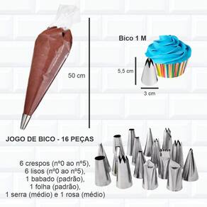 Kit confeiteiro especial para aqueles que estão iniciando no ramo da confeitaria ou para quem quer renovar seus utensílios. Conteúdo: - kit formas 10 cm 3 peças 15, 20 e 25 cm - bailarina giratória - polipropileno - 30 cm branca - jogo de bico inox 16 peças: 6 crespos nº0 ao nº5 , 6 lisos nº0 ao nº5 , 1 babado padrão , 1 folha padrão , 1 serra médio e 1 rosa médio - manga descartável 6 unid. - bico 1m Não encontrou o que procura Nos envie uma mensagem com sua sugestão faremos o possível para encontrar e publicar o que deseja com um valor competitivo, assim você poderá colocar todos os produtos no carrinho e enviaremos tudo em um único . A isamar é uma empresa voltada ao segmento de panificação e confeitaria. Atuamos no mercado desde 1978, criando parcerias e impulsionando negócios. Desenvolvemos produtos de alta qualidade para que possamos atender bem cada cliente, o que faz de cada um, parceiros e amigos. Atuamos em todo o território nacional oferecendo soluções completas para o setor. Obrigado pela visita e boas compras Marca: Não Informado
