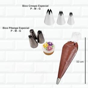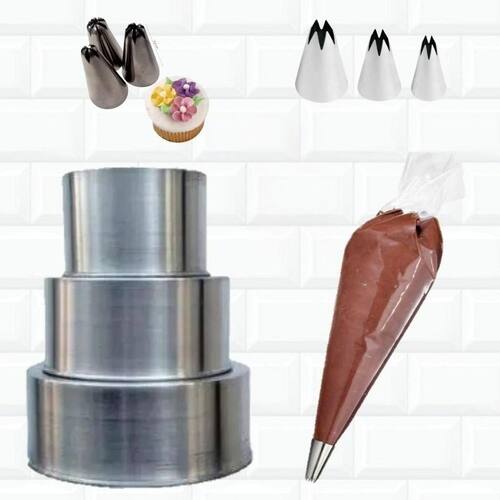 Kit confeiteiro especial para aqueles que estão iniciando no ramo da confeitaria ou para quem quer renovar seus utensílios. Conteúdo: - kit formas redonda 3 peças 15, 20 e 25 cm - kit bico 1m 3 peças p m g - kit bico 1b 3 peças p m g - manga descartável 6 unid. Não encontrou o que procura Nos envie uma mensagem com sua sugestão faremos o possível para encontrar e publicar o que deseja com um valor competitivo, assim você poderá colocar todos os produtos no carrinho e enviaremos tudo em um único . A isamar é uma empresa voltada ao segmento de panificação e confeitaria. Atuamos no mercado desde 1978, criando parcerias e impulsionando negócios. Desenvolvemos produtos de alta qualidade para que possamos atender bem cada cliente, o que faz de cada um, parceiros e amigos. Atuamos em todo o território nacional oferecendo soluções completas para o setor. Obrigado pela visita e boas compras Marca: Não Informado