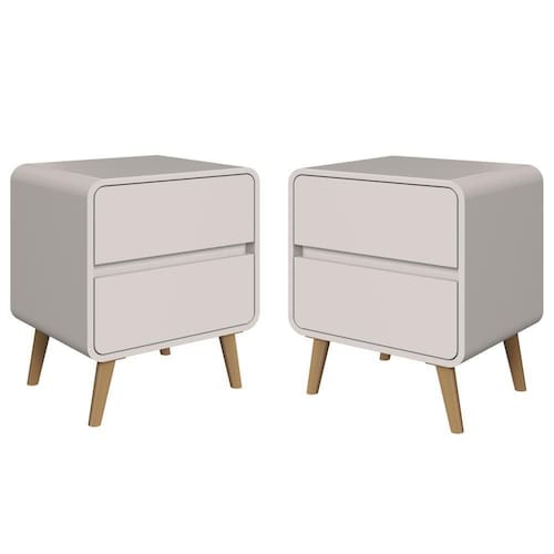 O Kit Conjunto 02 Mesas de Cabeceira Canto Curvo com 02 Gavetas e Pés Palito Retrô da Completa Móveis apresenta funcionalidade, praticidade e elegância com design arrojado e atemporal! Com cantos arredondados, traz uma leveza ao ambiente.