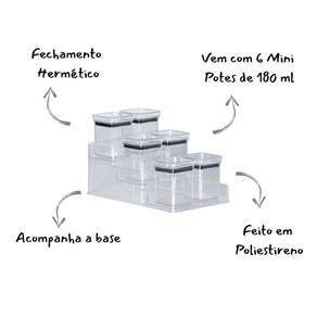 Composto por 6 mini potes de 180ml e um suporte moderno, este kit é a solução perfeita para manter sua cozinha organizada, otimizando o espaço e trazendo um toque de estilo à sua decoração.