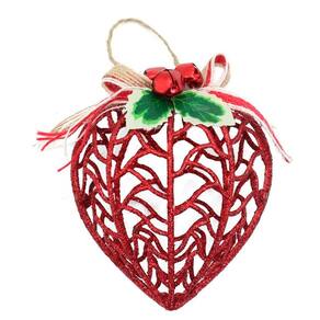 Kit Conjunto 9 Peças Decoração Enfeite Bola Coração Árvore Natal Vermelha Glitter Natalina 11,5cm -